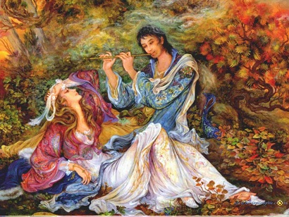 (نقاشی زیبای استاد فرشچیان، در حکایتِ لیلی و مجنون)
